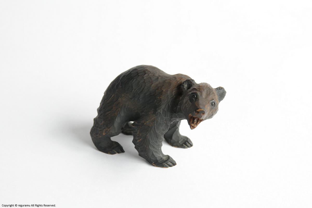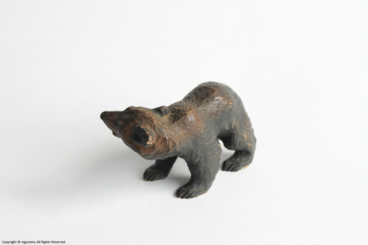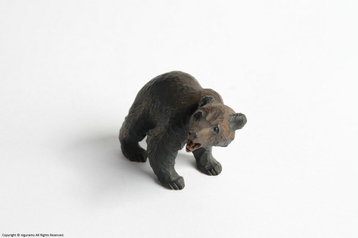 The Ainu were a people who did not have toys, but they had a great fondness for handicrafts, and carving was their only special skill and art. Wooden bear carving began in the Taisho period (1912-1926) when the Tokugawa farm in Yakumo, run by the Owari Tokugawa family, modeled its bears after Swiss wooden carvings and had them made as a side job during off-season farming.