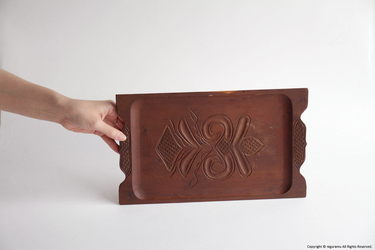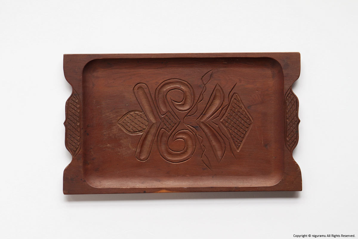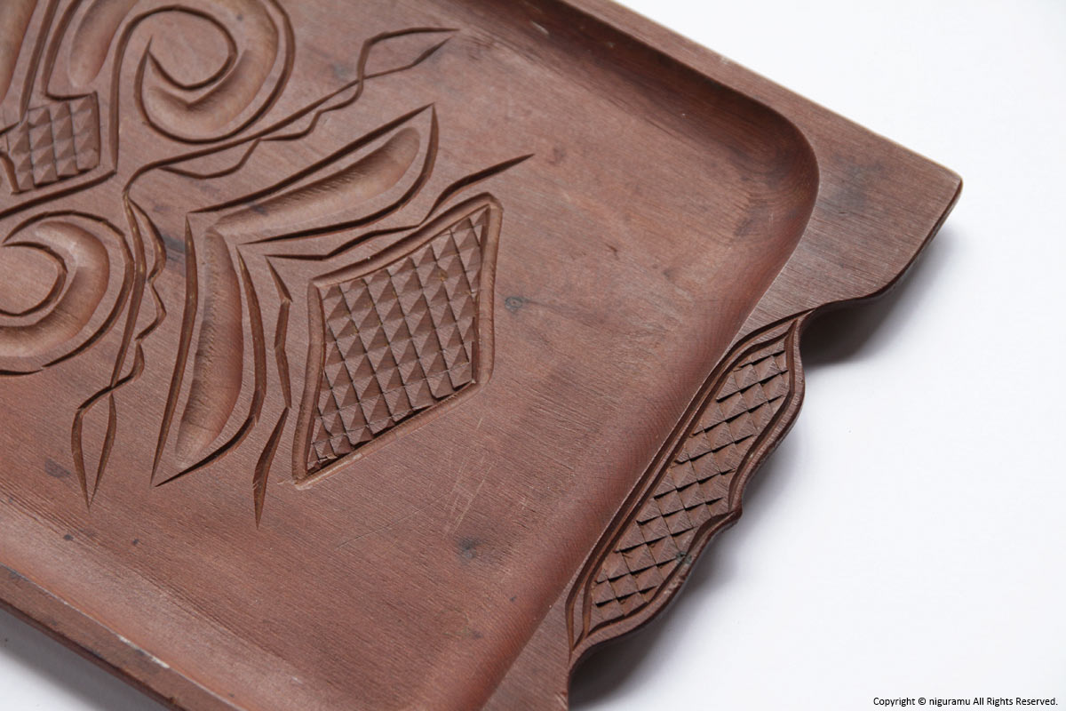 It is thought to be a tray with a beautiful carved wooden pattern made as a souvenir of Hokkaido.