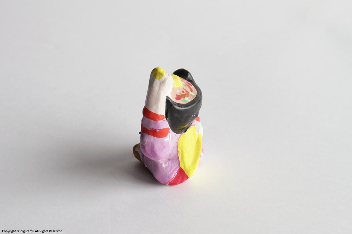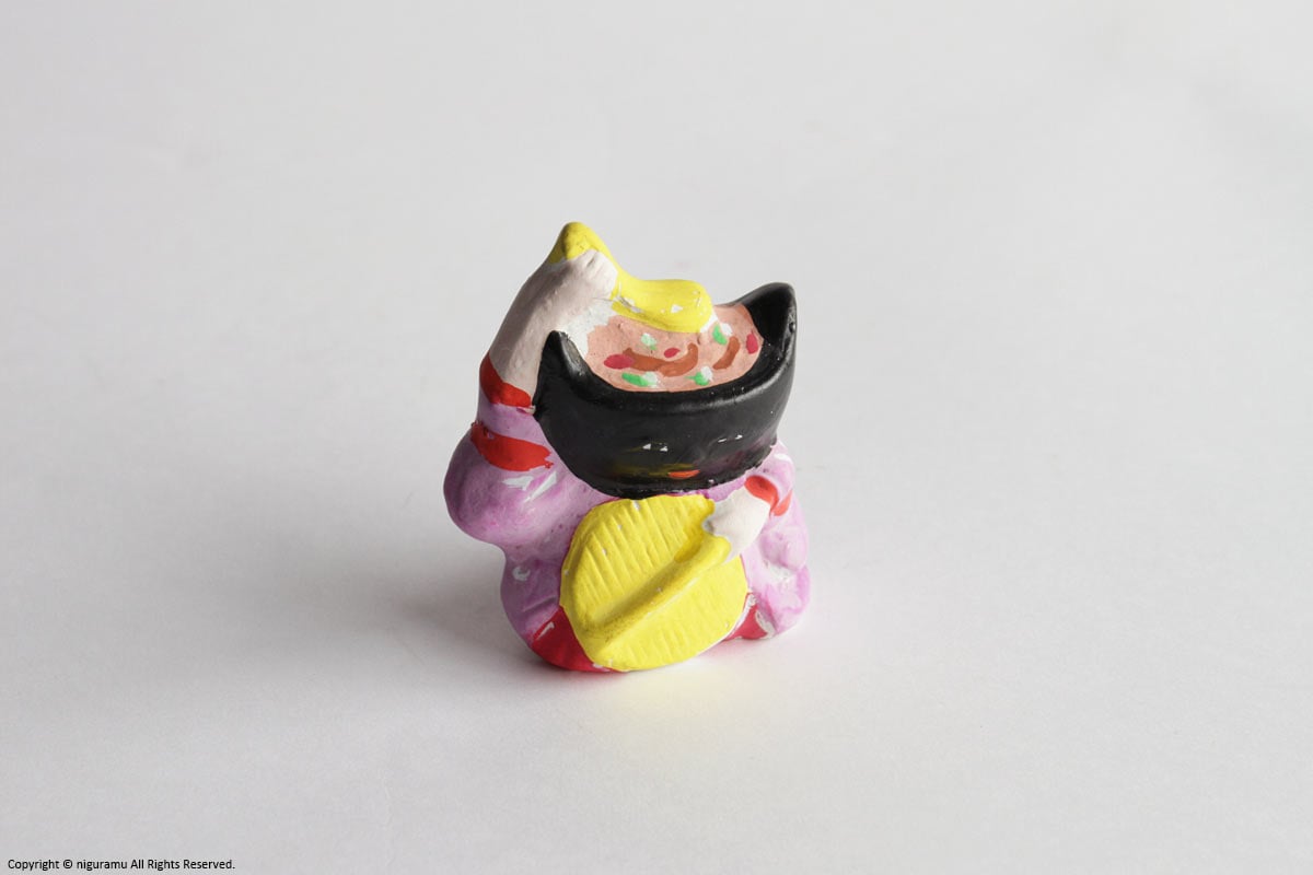 Clay mixed with red clay and sand is formed into plaster molds, and the pieces are fired in a kiln at a high temperature of approximately 800 degrees Celsius for several hours before being painted and finished. In addition to the famous dove whistles, there are hundreds of other types of molds that have been handed down since the Edo period (1603-1868).