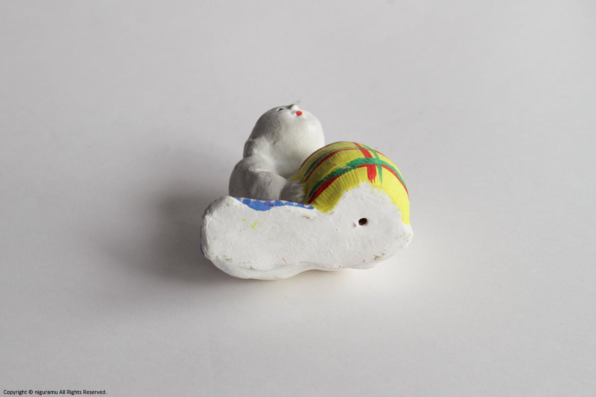 Clay mixed with red clay and sand is formed into plaster molds, and the pieces are fired in a kiln at a high temperature of approximately 800 degrees Celsius for several hours before being painted and finished. In addition to the famous dove whistles, there are hundreds of other types of molds that have been handed down since the Edo period (1603-1868).