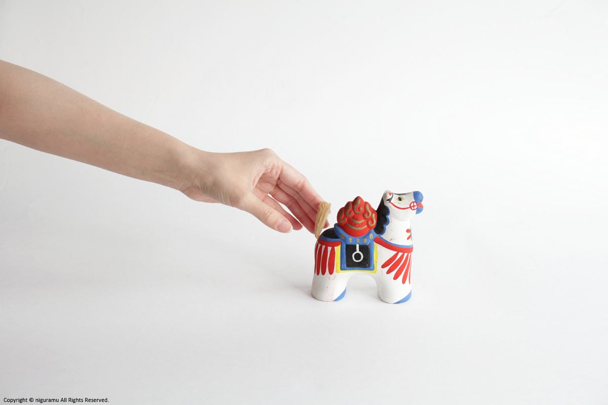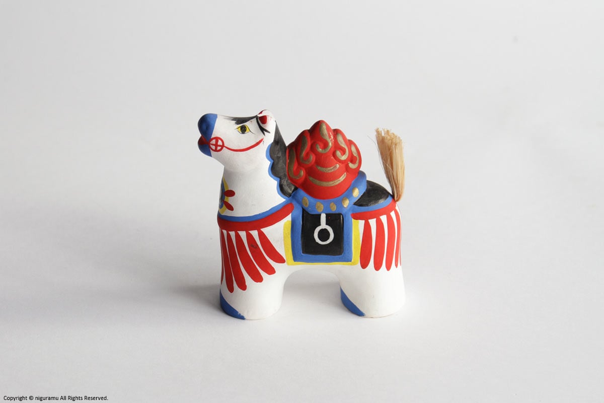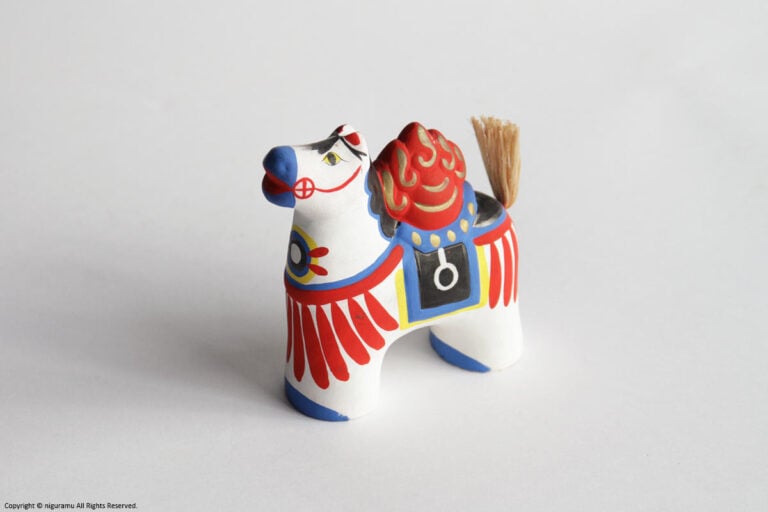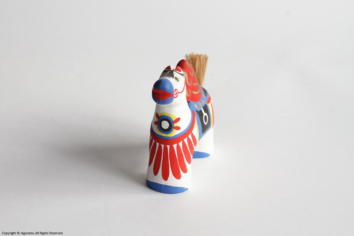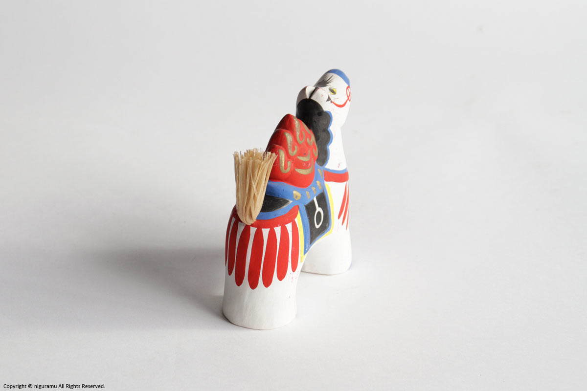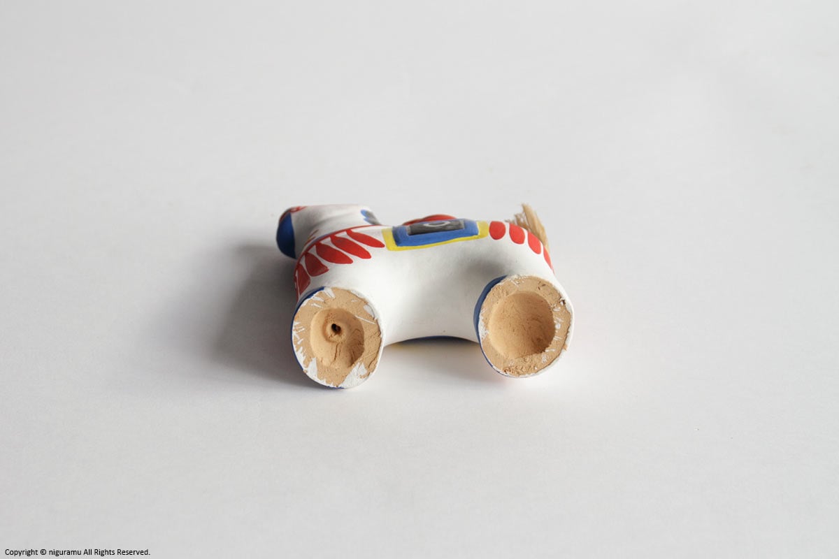 現在も鹿嶋市能古見で作られており、魔除け・開運の人形として鹿嶋市を代表する民芸品として人気があります。丸く単純化された形と、カラフルな色使いが可愛らしい意匠。