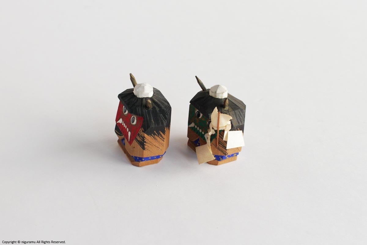 男鹿の奇習「男鹿のなまはげ」は伝説によると、むかし支那の武帝が5匹の鬼共を連れて男鹿に上陸し労役に従事せしめていたが、たまたま休日を与えたところ、村里に出て島民にいたずらをした。村人が一計を投じてこれを追い払い、その後毎年一回12月31日夜男鹿の村々をおとずれ豊年と幸福を祈るそうです。「なまはげ」とは生身を剥ぐ意味で、冬期火にあたっていると肌に斑紋が生じる。これは、なまけて火にばかりあったっているからできるので、これをはぎ、怠慢を戒める意味を持ち、又その対象は子供や新妻に限られている。