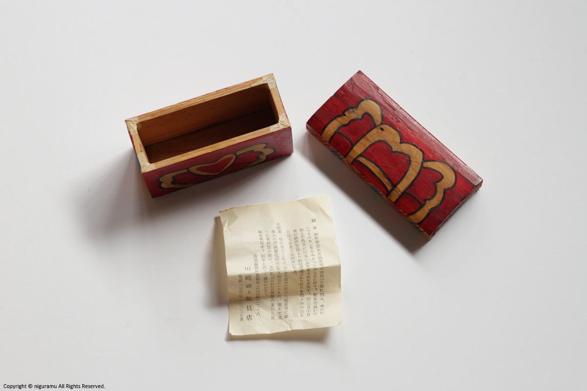 御妃豊玉比売命が彦穂穂出見尊に御輿入になられた時の御調度化粧箱を象り、玩具化したもので、割木で造った長持型の箱で、大胆に描かれた花模様は素朴な雅趣を表現している。
